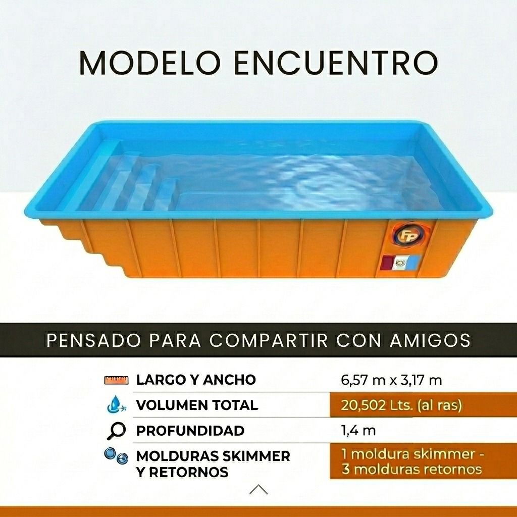 Pileta de Fibra de vidrio de Fabricación propia modelo Encuentro